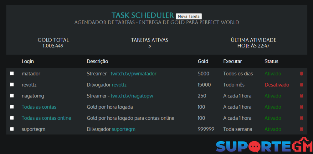 Olá, estou desenvolvendo este script este script que manda gold de forma automatica de acordo com o tempo definido por você Script feito focado em servidores que possuem streamers, dilvugador e que precisa enviar gold todo X dia* De bônus fiz para enviar para todos as contas ou todas contas online 😃 (aceito críticas construtivas para melhorar o projeto) Se você tive interesse no script entre em contato comigo.