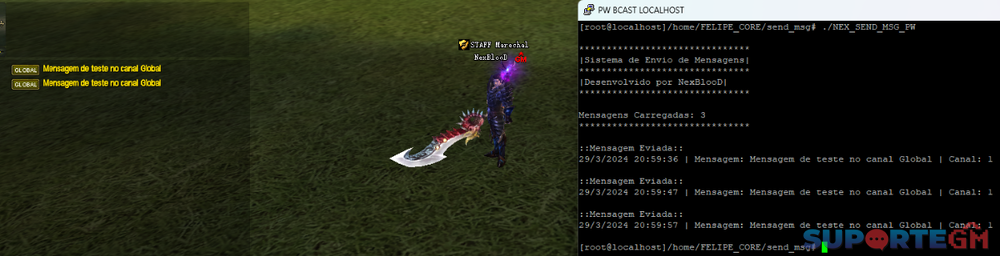 Fala galera! Estou trazendo um script que finalizei para um amigo hoje e resolvi postar para ajudar vocês, não é muito mas já traz alguma facilidade sem ter a necessidade de enviar as mensagens via aipolicy ou de outra maneira. Em breve estarei trazendo mais coisas para contribuir com a comunidade. Abraços Script de Envio de Mensagens Automáticas Este é um script que automatiza o envio de mensagens por meio de um intervalo de tempo definido. Ele é projetado para simplificar o processo de comunicação enviando mensagens em momentos específicos, sem a necessidade de intervenção manual. Funcionamento: O script utiliza um temporizador para enviar as mensagens em intervalos regulares, facilitando o agendamento preciso das comunicações. Cada mensagem é definida com um conteúdo específico e um canal de destino. O tempo entre o envio de cada mensagem é configurável, permitindo uma personalização completa do ritmo de comunicação. Como Definir as Mensagens: Arquivo JSON: As mensagens são armazenadas em um arquivo JSON, proporcionando uma estrutura organizada e fácil de gerenciar. Estrutura de Dados: Cada mensagem é representada como um objeto no arquivo JSON, contendo o conteúdo da mensagem, o canal de destino e o intervalo de tempo entre os envios. Configuração Personalizada: Os usuários podem definir livremente o conteúdo das mensagens, ajustando-as de acordo com as necessidades específicas de comunicação. Como Configurar o Tempo de Envio: Intervalo de Tempo: O tempo entre os envios das mensagens é configurado em segundos, proporcionando flexibilidade para adaptar o ritmo de comunicação às demandas do cenário. Próximo Envio: Após o envio de uma mensagem, o script calcula automaticamente o momento do próximo envio com base no intervalo de tempo configurado. Benefícios do Script de Envio de Mensagens: Automatização: Elimina a necessidade de enviar manualmente cada mensagem, economizando tempo e esforço. Precisão: O uso de um temporizador garante que as mensagens sejam enviadas pontualmente de acordo com o intervalo definido. Personalização: Permite a customização das mensagens e dos intervalos de tempo para atender às suas necessidades específicas. SEND_MSG_PW.rar