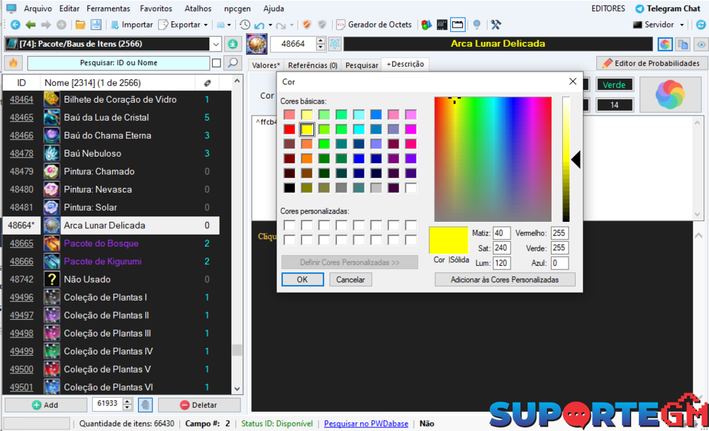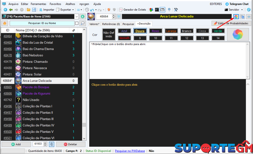 Se você deseja que algum item no ingame apareça com uma cor especifica você tem que ir direto no item não importa que seja set , arma , baú etc. Editar nela não Lista de Addons. Só seguir oque eu expliquei acima