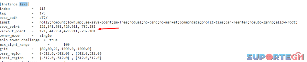 13. gs.config save_point = (idmapa, coordenada) Kickout_point = (idmapa, coordenada)