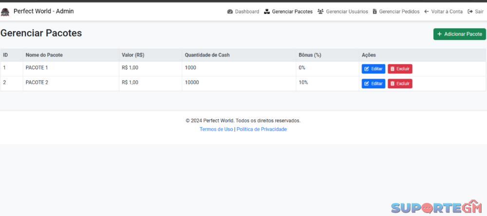 Projeto: Painel do Jogador e Administração (Em Desenvolvimento)