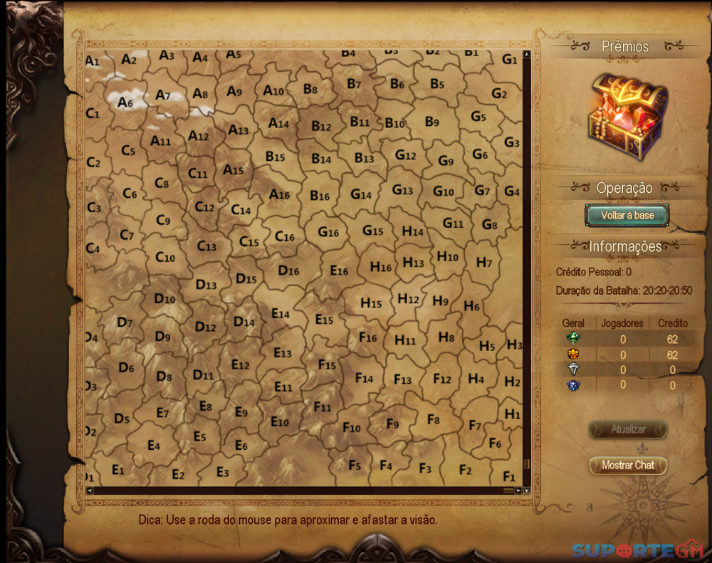 Olá, Através dos arquivos postados aqui, do servidor 1.6.5, criei um PW para jogar com amigos, mas estou tendo dificuldade em configurar/jogar a Guerra das Nações (NW). Ao adentrar nela sou direcionado para uma nação, mas o mapa fica todo “desativado” sem qualquer informação ou possibilidade de entrar nas batalhas. Também vi que a quantidade de jogadores nas nações fica como 0, como se não estivesse entrando na nação: Tentei alterar os arquivos domain2, pegando os de outros servidores, mas sem sucesso. Alguém saberia como resolver?