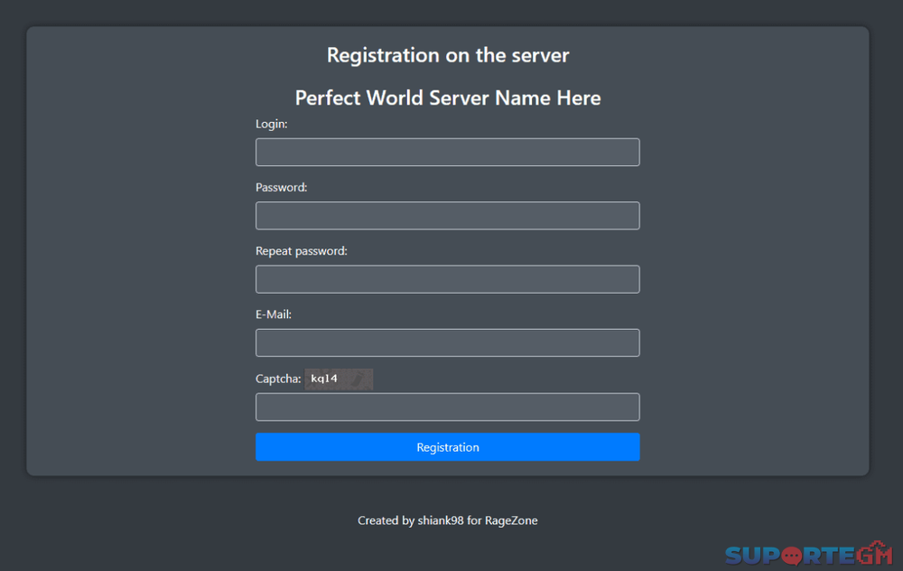 Um script simples que fiz há algumas semanas. É bem básico e usa bootstrap para design. Também está disponível no github se você preferir usar git clone [Conteúdo Oculto] PW-Registration-Script-with-Captcha-main_2.zip